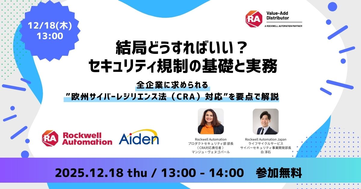 本ウェビナーでは、サイバーセキュリティ全体の最新トレンドを踏まえつつ、CRA対応の重要ポイントをわかりやすく解説いたします。